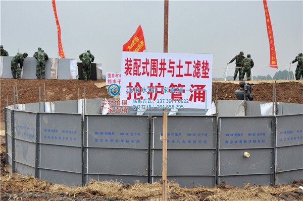 裝配式圍井突破了傳統構筑圍井的思維模式,摒棄了傳統的圍井材料、結構和施工工藝,是一種全新、快捷、廉價、環保型防汛搶險器材。具有施工高效快捷,裝配靈活,適應性強,便于儲運,造價低廉,可重復使用,綠色環保等特點。